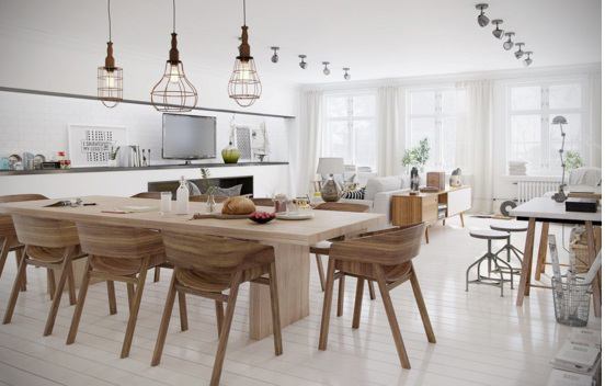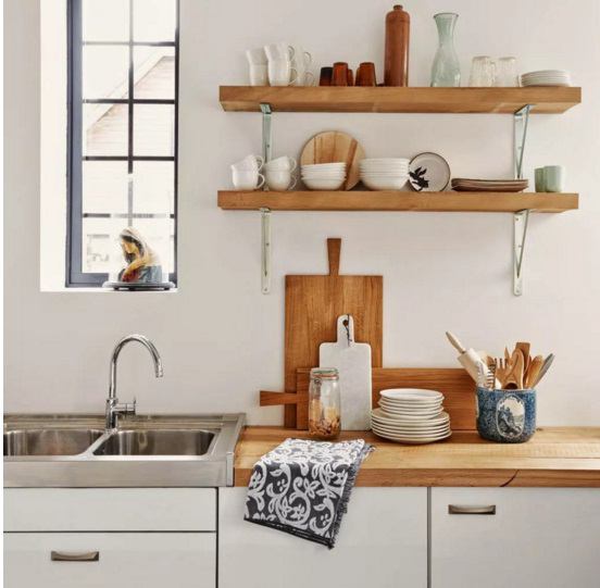 Không gian nhà bếp trở nên tươi sáng và thân thiện hơn rất nhiều với những thiết kế bằng gỗ tự nhiên sáng màu. Bạn có khá nhiều lựa chọn cho chất liệu này như sàn nhà, bàn ăn, kệ mở…